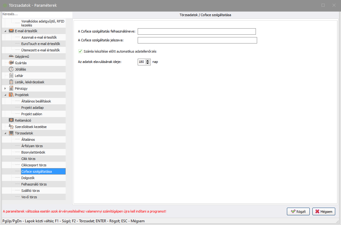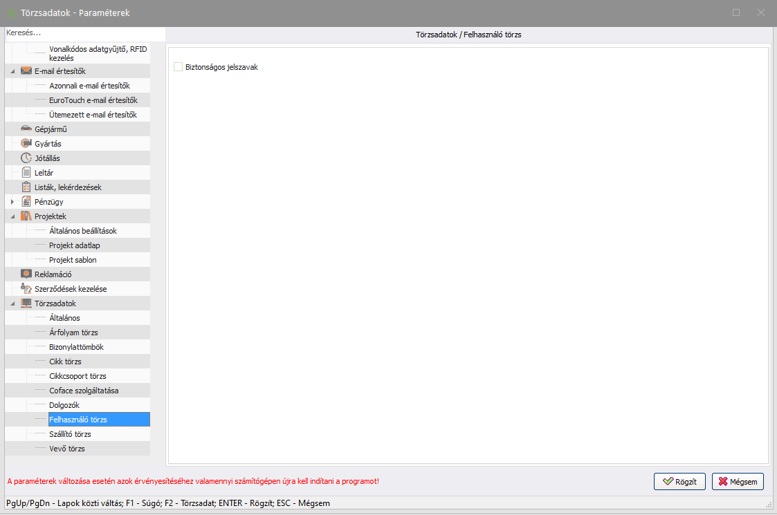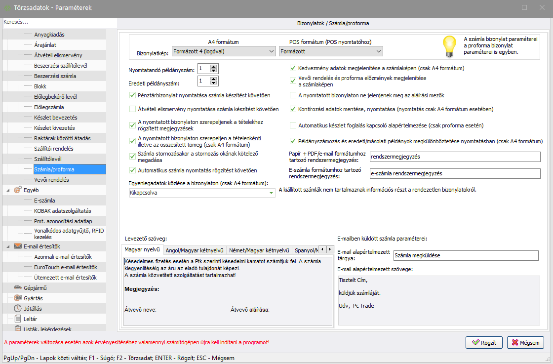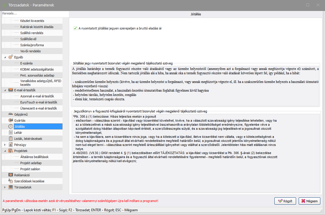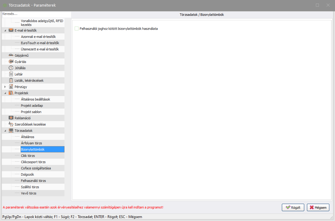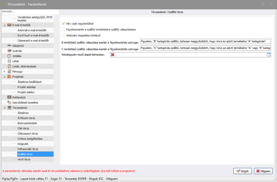 Fontos! Az ebben az ablakban előforduló bármely paraméter változtatása esetén a kívánt hatás érvényesítéséhez valamennyi, a rendszert futtató számítógépen újra kell indítani a programot!