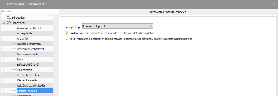 /  Integráció a vevői rendelés és proforma bizonylatokkal: amennyiben a kapcsoló aktív, úgy a vevői rendelések karbantartása ablakban egy kiválasztott bizonylat tételeihez indítható projekt.