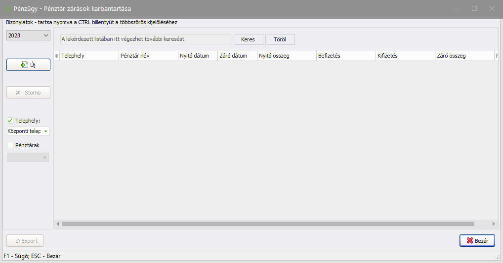 Ebben a menüpontban a már rögzített Pénztár zárások áttekintésére és esetleges módosítására van lehetőség.