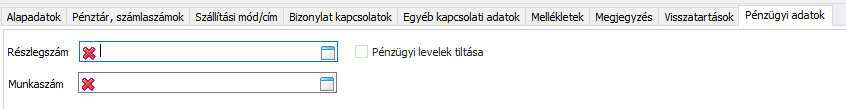 A bizonylatfej Pénzügyi adatok c. részében található a Pénzügyi levelek tiltása kapcsoló, amellyel a funkciót aktiválhatja.
