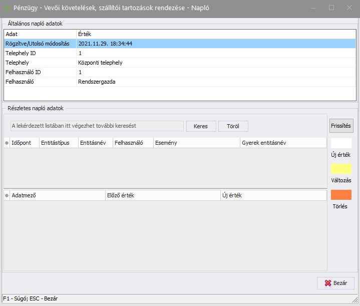 A rendszer naplózza a pénzügyi eseményeket, melyet a