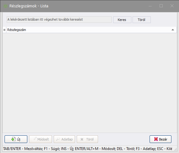 Elérése: Törzsadatok -> Egyéb -> Részlegszám törzs