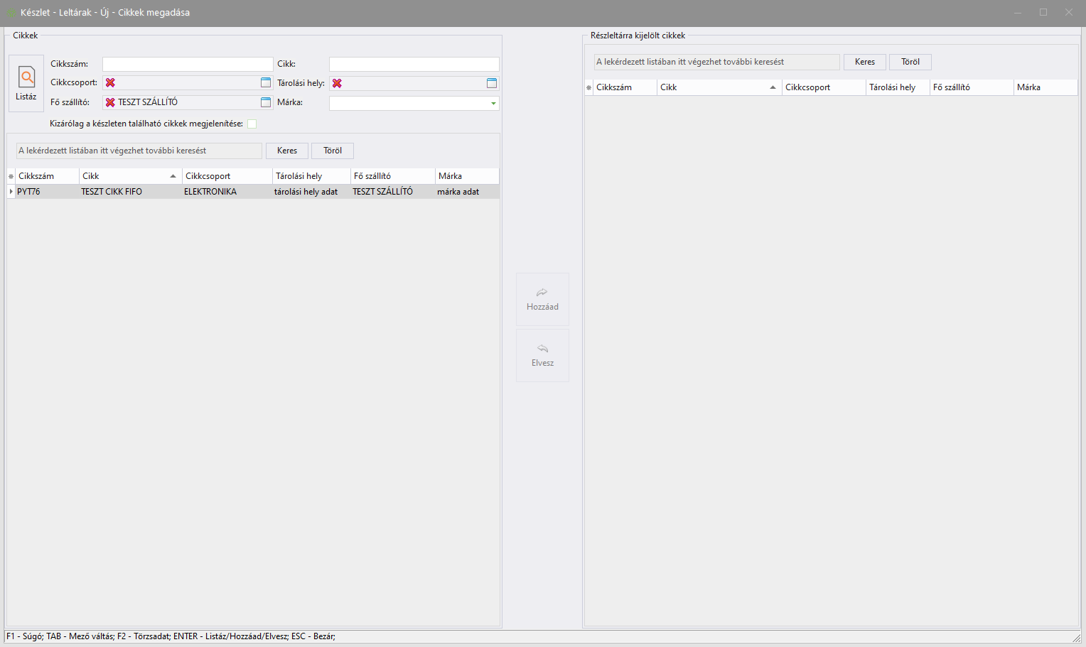 (Elvesz) gomb segítségével a Részleltárra kijelölt cikkek közül eltávolíthatja a részleltárra tévesen megjelölt cikkeket (működése a Hozzáadás funkcióhoz hasonlóan történik). Az ablak bezárásával (X), majd az