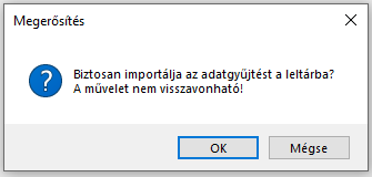 Az adatgyűjtésből történő adat beemelésének folyamata a részleltárba megegyezik a rendszer többi részében előforduló adatgyűjtés import folyamatával. (Bővebben a Bizonylatkészítés előzménybizonylat alapján c. fejezetben.) Az adatgyűjtés import művelete nem visszavonható!