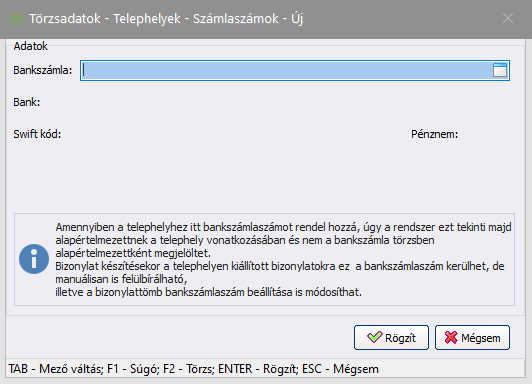 Mielőtt telephelyhez számlaszámot adna, először a Bankszámla törzsben kell rögzítenie azt.