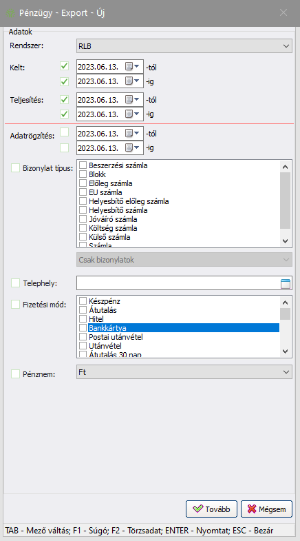 Az adott időintervallumban keltezett bizonylatok szűrése. |