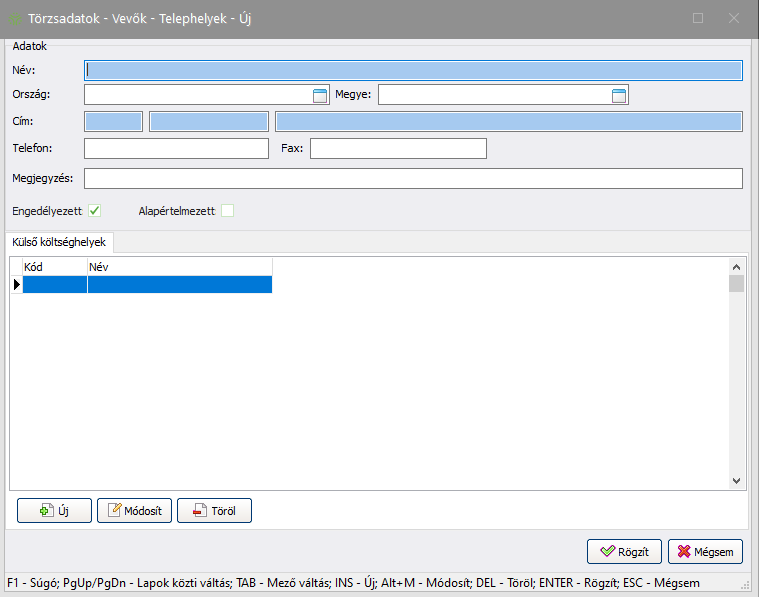 - Az Ügyfél telephelyek fülön szükség esetén rögzítsen új Telephelyet!