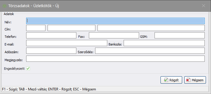 mezőbe a rögzítendő üzletkötő nevét! - Opcionálisan töltse ki a többi mezőt is!