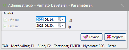 Elérése: Adminisztráció -> Lekérdezések, listák -> Várható bevételek