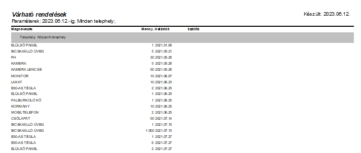 A lekérdezés tárgya egy paraméterező ablakban adható meg. A lekérdezés használható egy vagy több paraméterrel, illetve paraméter nélkül is. Utóbbi esetben az összes, még fel nem dolgozott Szállítói rendelés tételét visszaadja a program, köztük akár a már évek óta nem aktuális, de ki nem törölteket is.