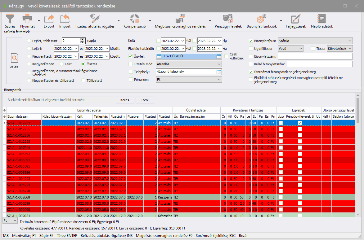 Fontos! A szűrési feltételektől függetlenül a listában a nulla végösszegű bizonylatok nem szerepelnek!