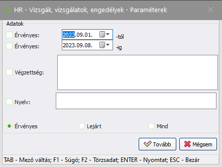A HR modulban rögzített dokumentumok listázása érvényességük alapján.