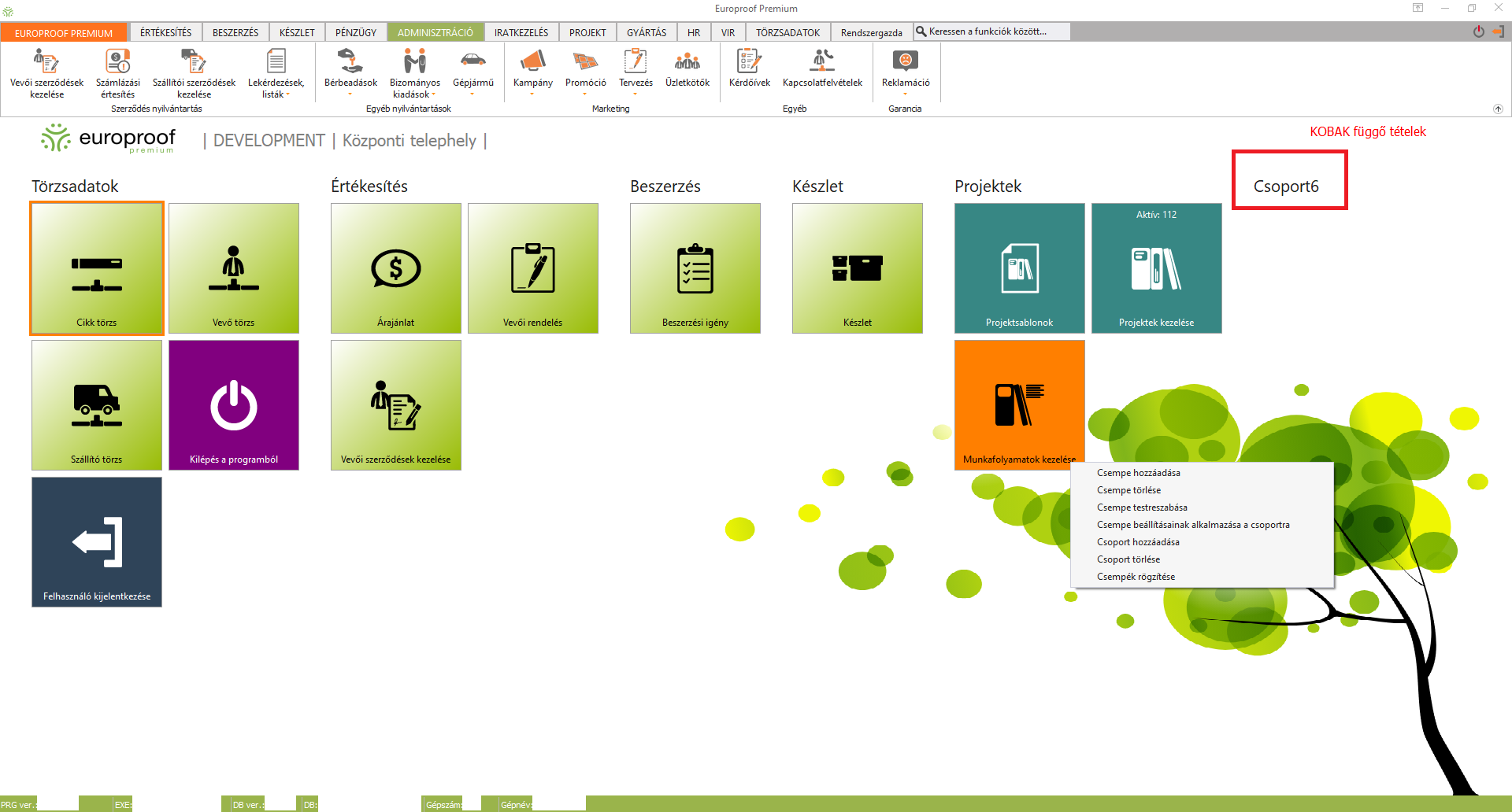 Bejelentkezést követően ez a felület jelenik meg, innen kiindulva érhető el a program összes funkciója. A programban engedélyezett menüpontok és funkciók elérhetősége függ az Ön által megvásárolt licensztől!