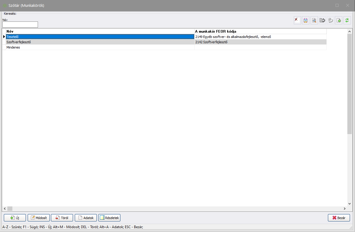 A munkakörök listája a Keresés: mező segítségével név szerint kereshető.