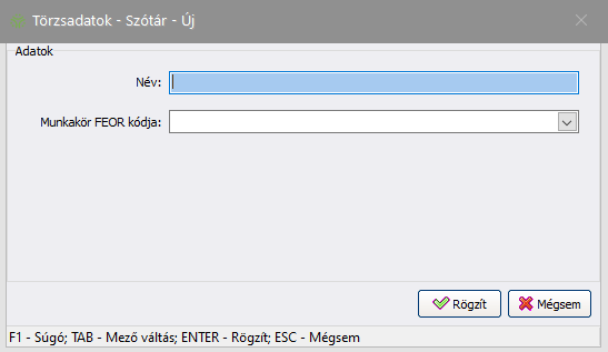 Egy HR specifikus törzsadat, a dolgozó munkaköre rögzíthető itt egy szabad szöveges mező segítségével, valamint megadható a munkakörhöz tartozó munkaköri (FEOR) kód.