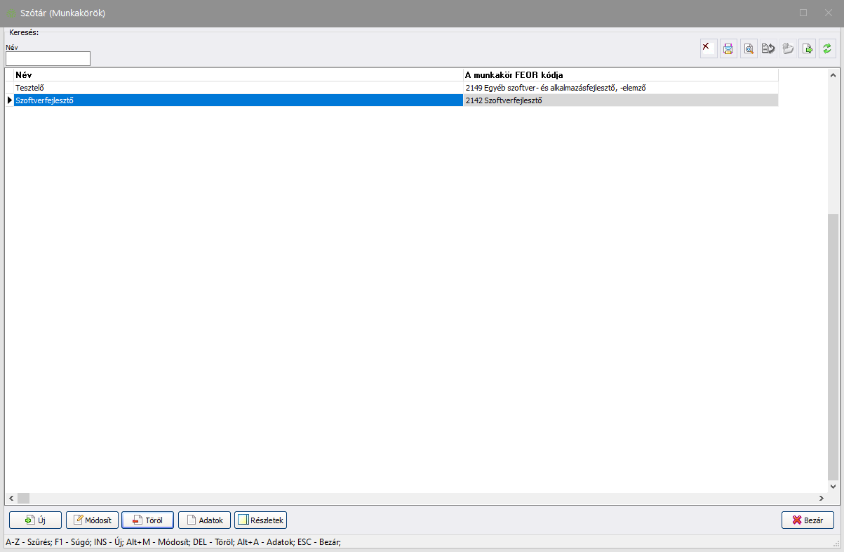 A munkakörök listája a Keresés: mező segítségével név szerint kereshető.