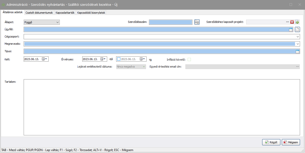 - (Új): Új szerződés rögzítése.