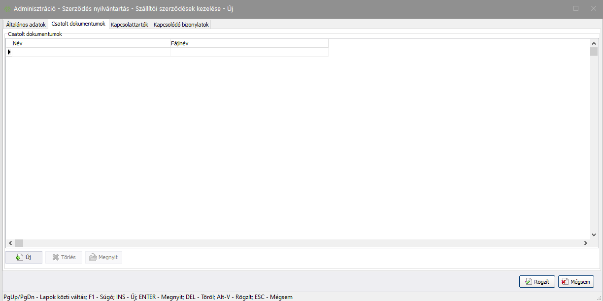 Új szerződés - Csatolt dokumentumok fül