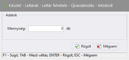 - aktív soron állva ENTER lenyomására: megnyílik a Módosít ablak, ahol megadható a mennyiség,