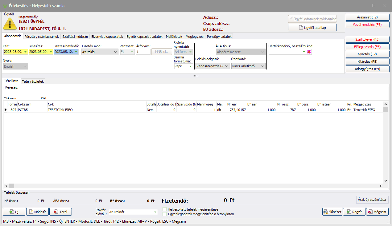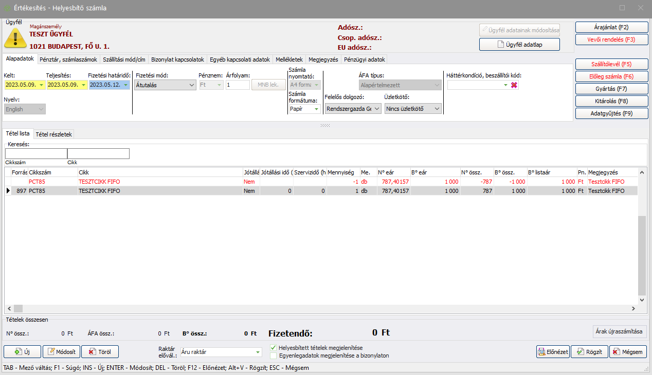 (Mégsem) gombra kattintva a bizonylatkészítés folytatható.